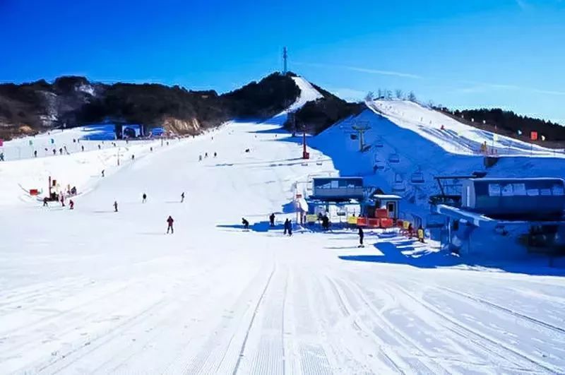北京云佛山滑雪场,大、中、小雪道鳞次栉比。