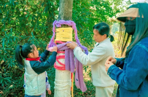 🌳化身树木保育员为小树刷白、穿上彩色毛衣过冬,