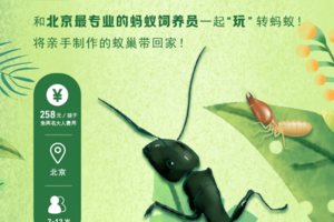 你还将在现场观察到不同蚂蚁的活动及行为,如北京常见的大个头-日本弓背蚁,只有在南方才能看到的在树上筑巢的树栖蚂蚁种群,专门吃种子的“蚂蚁快递员”-收获蚁,蚂蚁爸爸也能生孩子的聚纹双刺猛蚁,还有大多数孩子都认识的会切割叶子的切叶蚁等!