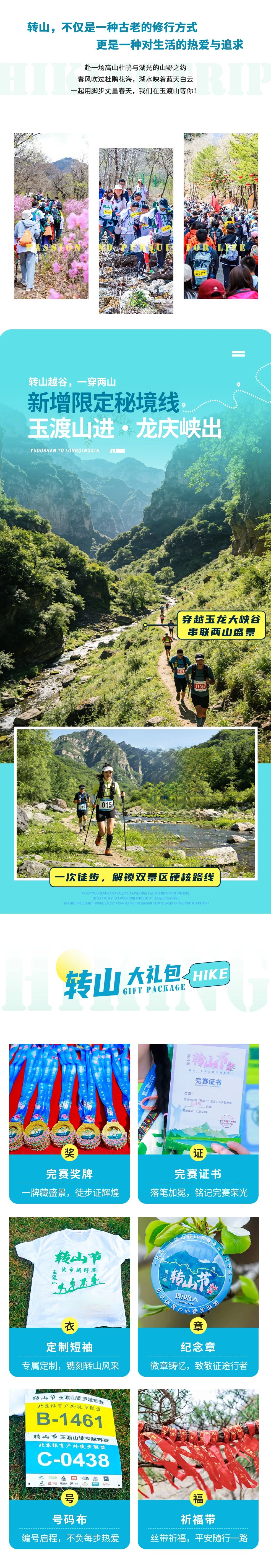 4、徒步前20名:A组B组完成挑战前20名(不含前三名),分别由赞助商提供的精美礼品一份+玉渡山全年免门票(号码布盖签到章后在主会场根据名次领取徒步证书和礼品);