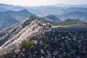 每年三月时节,鹞子峪长城漫山桃花,高点可以眺望黄花城水库,山水映桃花,可谓帝都最美花海长城