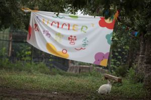 没有洁白的帐篷天幕,但有蹦床、秋千、滑梯、迷宫、树屋……可以让孩子们充分放电,还有苹果树下的露营椅可以放空和放松。