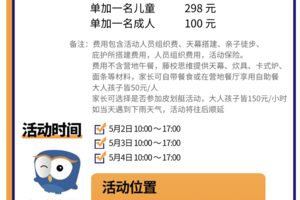 营地提供,天幕,炊具,卡式炉,面条等材料。家长可自带餐食或在营地餐厅享用自助。