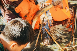 接下来就是我们的梳藕清淤大挑战啦!终于要轮到爸爸下场啦!相信我,这回真的是“下场”!这将是难得的亲子互动的愉快时光,全家一起享受参与公益的快乐!爸爸们要好好表现哟!