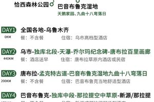 后期如遇独库公路因天气等原因临时关闭,则行程变更为:D2:乌市—途径巴伦台—巩乃斯镇,住巩乃斯镇酒店或民宿D3:巩乃斯镇—那拉提空中草原—巴音布鲁克九曲十八弯,住巴音布鲁克当地舒适型酒店D4:巴音布鲁克—唐布拉百里画廊—孟克特古道景区—新源/那拉提。住新源/那拉提当地舒适型酒店后续行程不变,绕路多产生的费用由队员们现场AA。