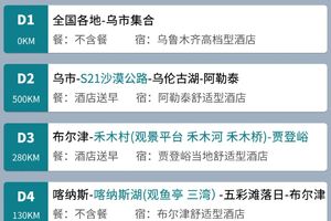 抵达乌市行程结束,建议预定第二天的飞机(火车),次日根据大交通的时间,自行前往乌市国际机场(火车站),应急方案多走的路程,费用由全体团友现场AA。