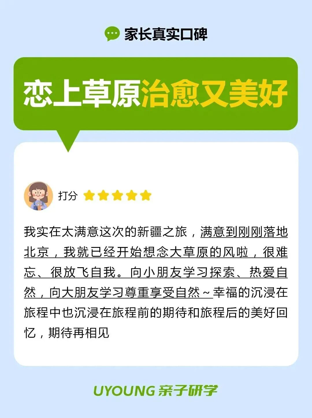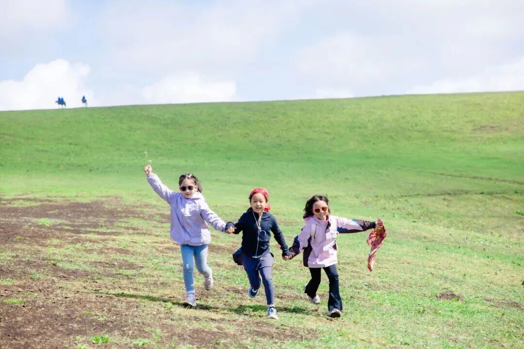 这里没有拥挤的人群,只有无边的绿毯和远处的雪山。孩子可以在草原上撒欢,跟着植物大咖认识奇花异草,晚上还有观星课堂,一起数银河里的星星;