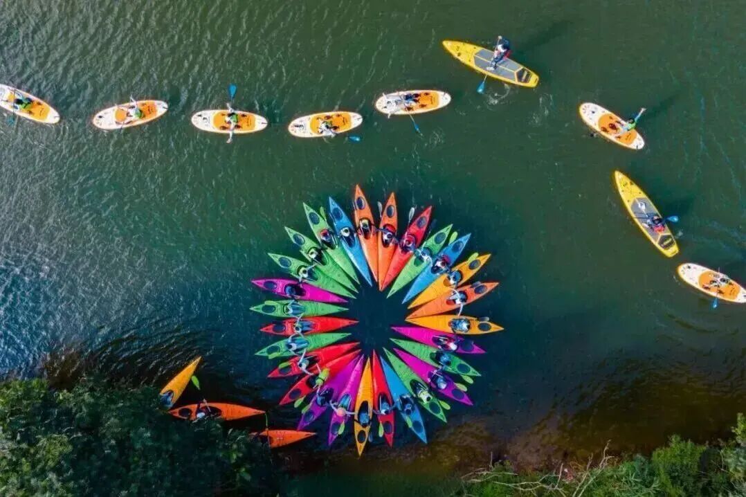 这是只有划到湖中央才能看到的景象在水浪中感受平衡与力量;在水上钢琴上踏出节奏,把水上运动玩出别样趣味。