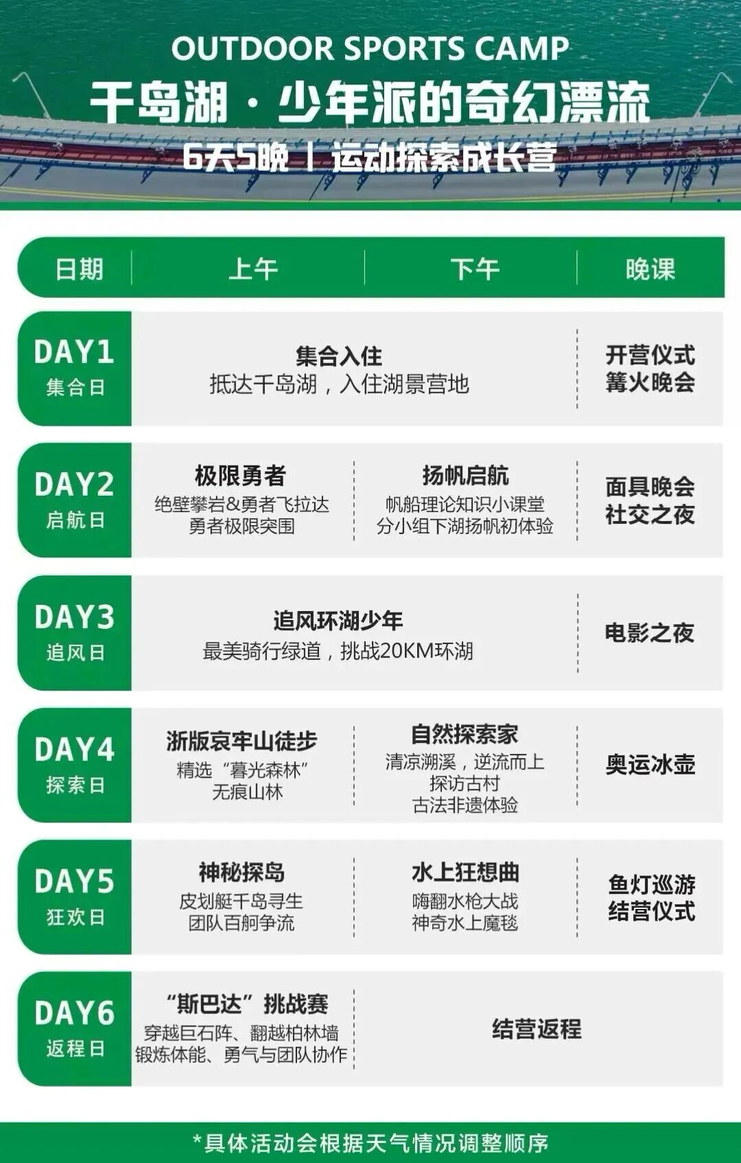 六天时间,七项核心运动,水陆两栖的完整体验让孩子们身心奔赴自然