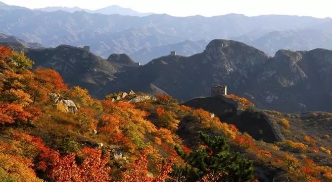 红石门村在北京市平谷区金海湖镇东北部,其名称来源于村口的一片红色山崖。村子位于河北、北京、天津三省市交界处,四周群山环绕,植被覆盖率高,环境优美,是个纯山区村。从红石门村进山,到达山梁就会看到长城,资料显示始建于北齐天保年间,被当地称为野长城,与黄崖关、八达岭、司马台、金山岭的砖砌长城相比较,特色鲜明、风格迥然不同,全部由石块干垒而成,在一些险要地段,除主城墙外,有敌楼、垛口、烟墩、档马墙、马道等完整的防御体系,还有内外边墙的设置。长城依山势而筑、连绵而去,东和黄崖关长城衔接、西北向北京方向延伸。这两段长城正好都在山脊之上,因而长城也便成了京津冀三省市的边界线。