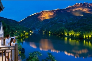古北水镇由中青旅控股股份有限公司发起投资,地址选在北京市密云区古北口镇。那里背靠中国最美、最险的司马台长城,坐拥鸳鸯湖水库,是京郊罕见的山、水、长城结合的区域。在此基础上,古北水镇依托司马台遗留的历史文化进行深度挖掘,将9平方公里的度假区整体规划为“六区三谷”,分别为老营区、民国街区、水街风情区、卧龙堡民俗文化区、汤河古寨区、民宿餐饮区与后川禅谷、伊甸谷、云峰翠谷,成为集观光游览、休闲度假、商务会展、创意文化等多种旅游业态于一体,服务与设施水平较高,参与性和体验性较好的综合性特色休闲国际旅游度假目的地。