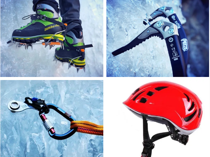 一付冰镐、一双冰爪、一条安全绳、一顶头盔……