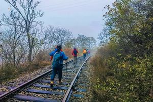 - 之后前去京门铁路徒步起点,在领队带领下开始穿越。