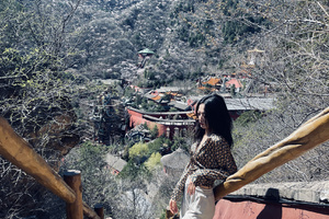 小路延山谷缓缓攀升,先经过一片树林,20来分钟后翻过一个小垭口,后面的路程就大都是平缓略有下降的山路,蜿蜒曲折穿行在山谷之中,远远便能看见白瀑寺,游览白瀑寺后,我们前往终点集合。