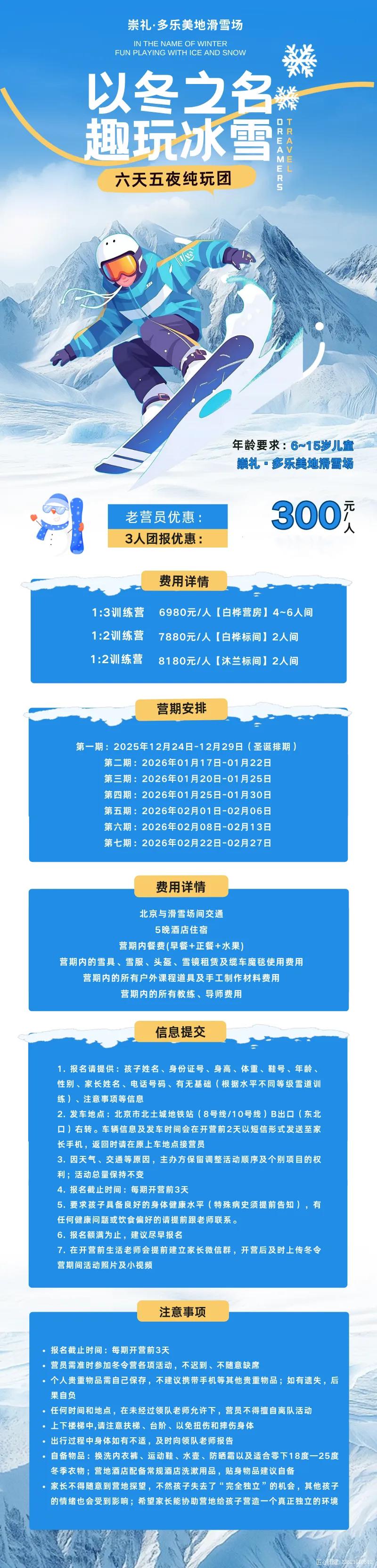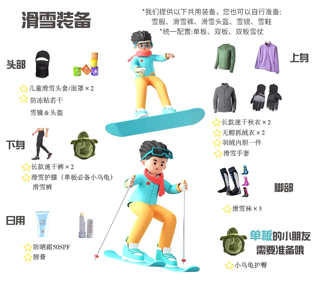 注:以上课程,组织方有权根据天气等因素做出适当调整,一切活动以营员安全为主,保证上雪总时长总量不变。