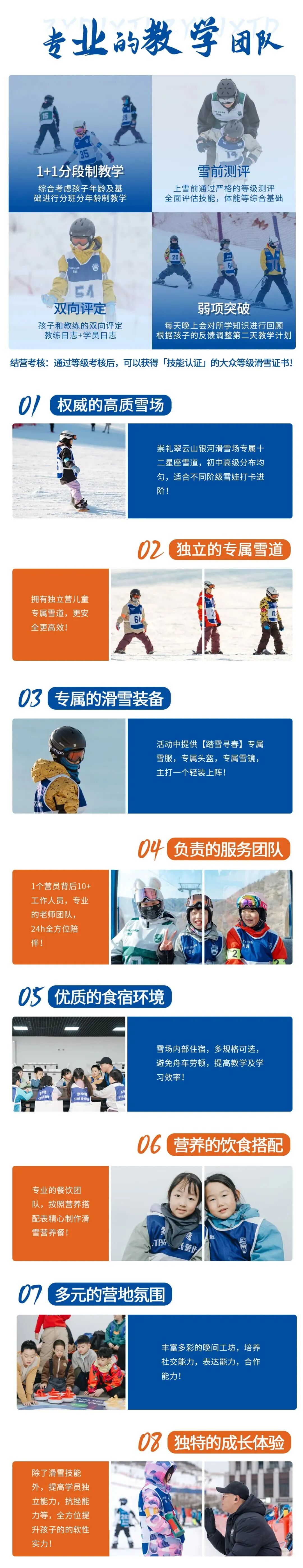 启动滑雪学院原班师资团队,【踏雪寻春】滑雪学院教练多年从事儿童滑雪教学,对6-14岁儿童有丰富的滑雪教学经验。