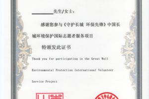 证书:官方颁发“长城环保”国际志愿者证书