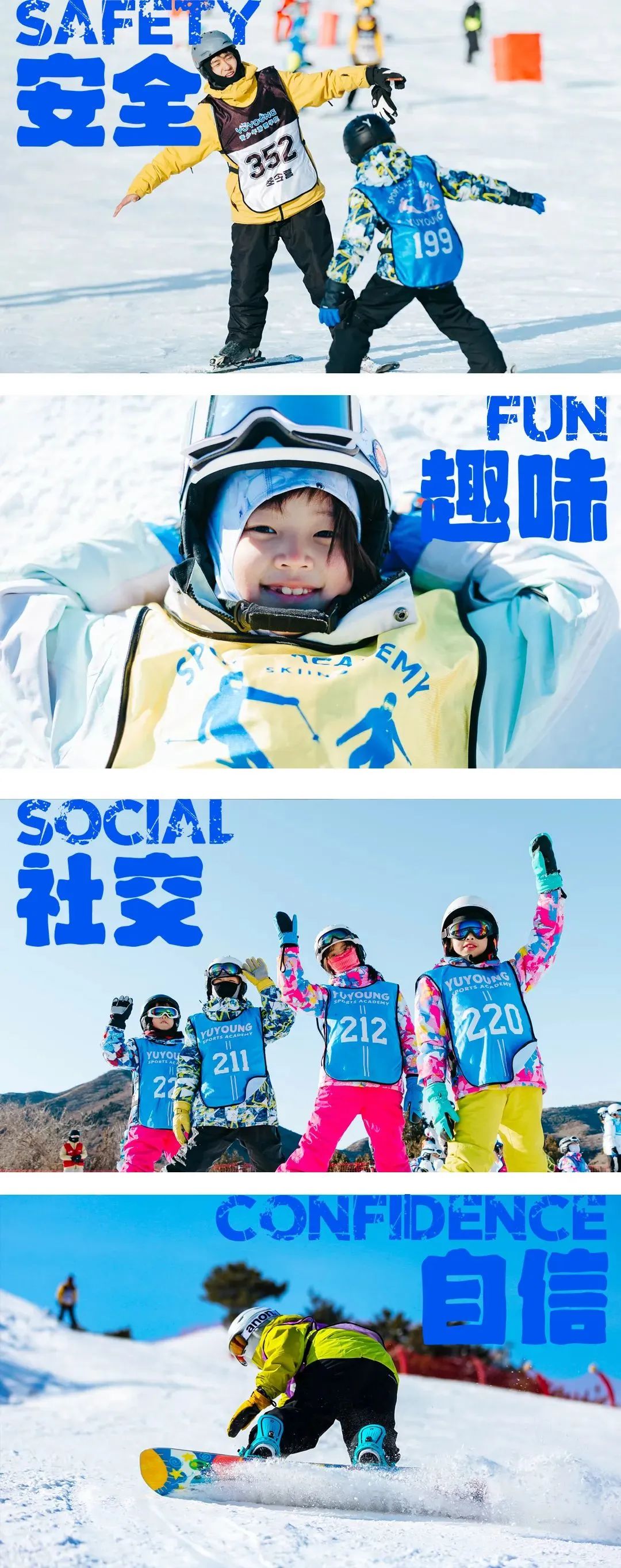 Y青少年滑雪学院,致力于让每个孩子爱上户外,撒欢冬天。