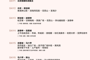 10 | 以上行程为参考行程,我社保留因航班、交通、签证等原因而导致行程变化,而对出团日期、行程顺序等做适当调整的权利,具体情况必须如实告知客人,旅行社跟客人协商之后,得到客人同意后调整。旅行社郑重提醒游客不得参观或者参与违反我国法律、法规、社会公德和旅游目的地的相关法律、风俗习惯、宗教禁忌的项目或者活动。 | ||