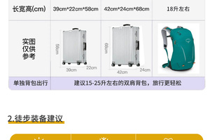 备注:尽量不携带行李箱,改用背包,进入雨崩徒步行程,携带行礼箱不方便。