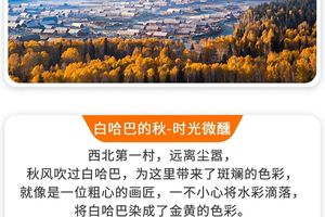 白哈巴村被誉为中国最美的八个小镇之一,图瓦人独特的民族服饰、宗教崇拜及风俗习惯也受到更多人的青睐。如果说喀纳斯是古朴的世外桃源,那白哈巴则是原始自然环境中的童话世界。这里的自然景观可与喀纳斯比拟,特别是秋天,成为一个色彩斑斓的世界,只见河谷内的杨树叶是金黄的,山脚下桦树的叶子是火红的,落叶松的针叶下缘是淡黄的,山岗上的草甸一片褐红,白雪覆盖的雪峰,蓝天上飘着几朵云彩,这样的风景,犹如置身于一位印象派油画大师以大自然为画布,绘出的一幅令人叹为观止巨作!
