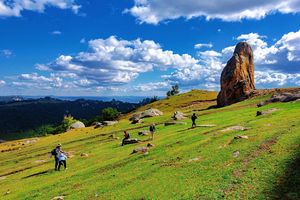 - 早餐后前往大青山徒步起点,这里溪流、草甸、云朵、牛羊全部集齐,此外特点裂谷、奇石、峡谷,草甸和峡谷完美结合,奇石林立俯瞰广袤,一直延伸到远方。这里的经典大裂谷,是必打卡之地。这里是内蒙"塞尔达"的世界,无垠的高山草原,无边的天空,无尽的自由。