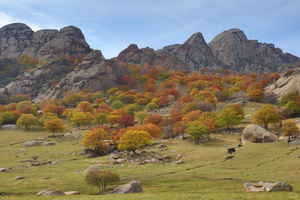 大青山-现实版塞尔达 徒步进入大青山,岩臼地质遗迹、花岗岩峰林、草甸与红色灌木交织,仿佛置身游戏世界。山谷间裂谷、奇石、峡谷步步惊艳,汗水与风一同吹散尘嚣,让人完全沉浸在大自然的震撼里。
