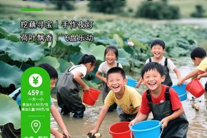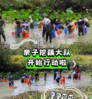 荷塘挖藕挑战(每个孩子提供1套背带式下水服,1双手套,1个小水桶,1个塑料袋,每个孩子仅限1名大人陪同下水,提供1名大人的下水服及手套。采集的荷叶、莲蓬、藕均可带走)。