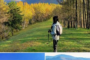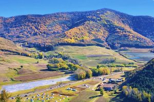 美林谷-峡谷秋色 燕山北麓的美林谷,U型山谷幽深而宁静。华北落叶松率先点燃秋色,阔叶混交林贡献红橙黄褐的渐变色彩。漫步在金色小径,阳光穿林洒落,脚下草地柔软有弹性,伴随牛铃声与风声,仿佛时光停滞。