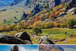 大青山-现实版塞尔达 徒步进入大青山,岩臼地质遗迹、花岗岩峰林、草甸与红色灌木交织,仿佛置身游戏世界。山谷间裂谷、奇石、峡谷步步惊艳,汗水与风一同吹散尘嚣,让人完全沉浸在大自然的震撼里。