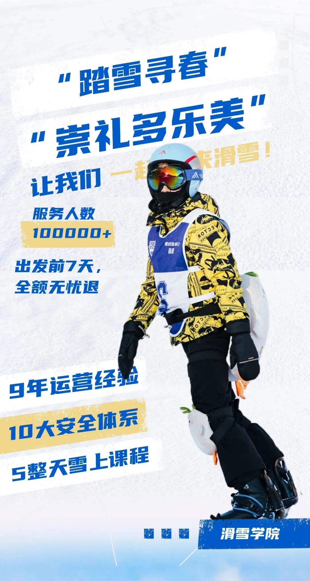 【踏雪寻春】滑雪学院独立打造的科学滑雪体系,2026全面升级,根据孩子实际水平分层教学。