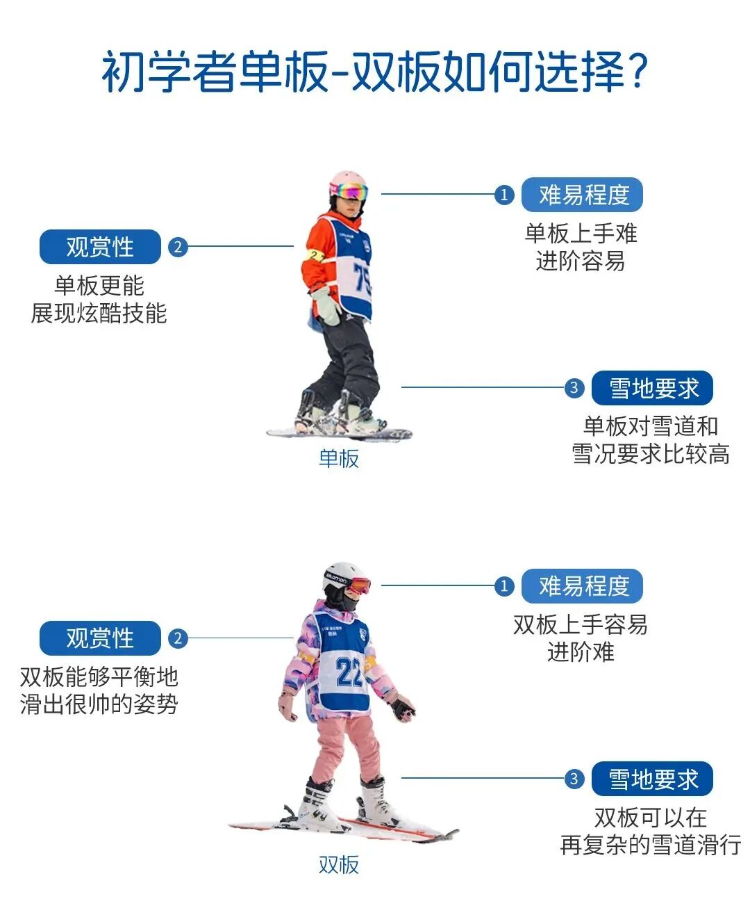 滑雪项目刺激,愉悦,释放多巴胺!是冬天里必不可少的项目,很多家长会咨询,究竟0基础的小朋友适合学习单板还是双板呢?