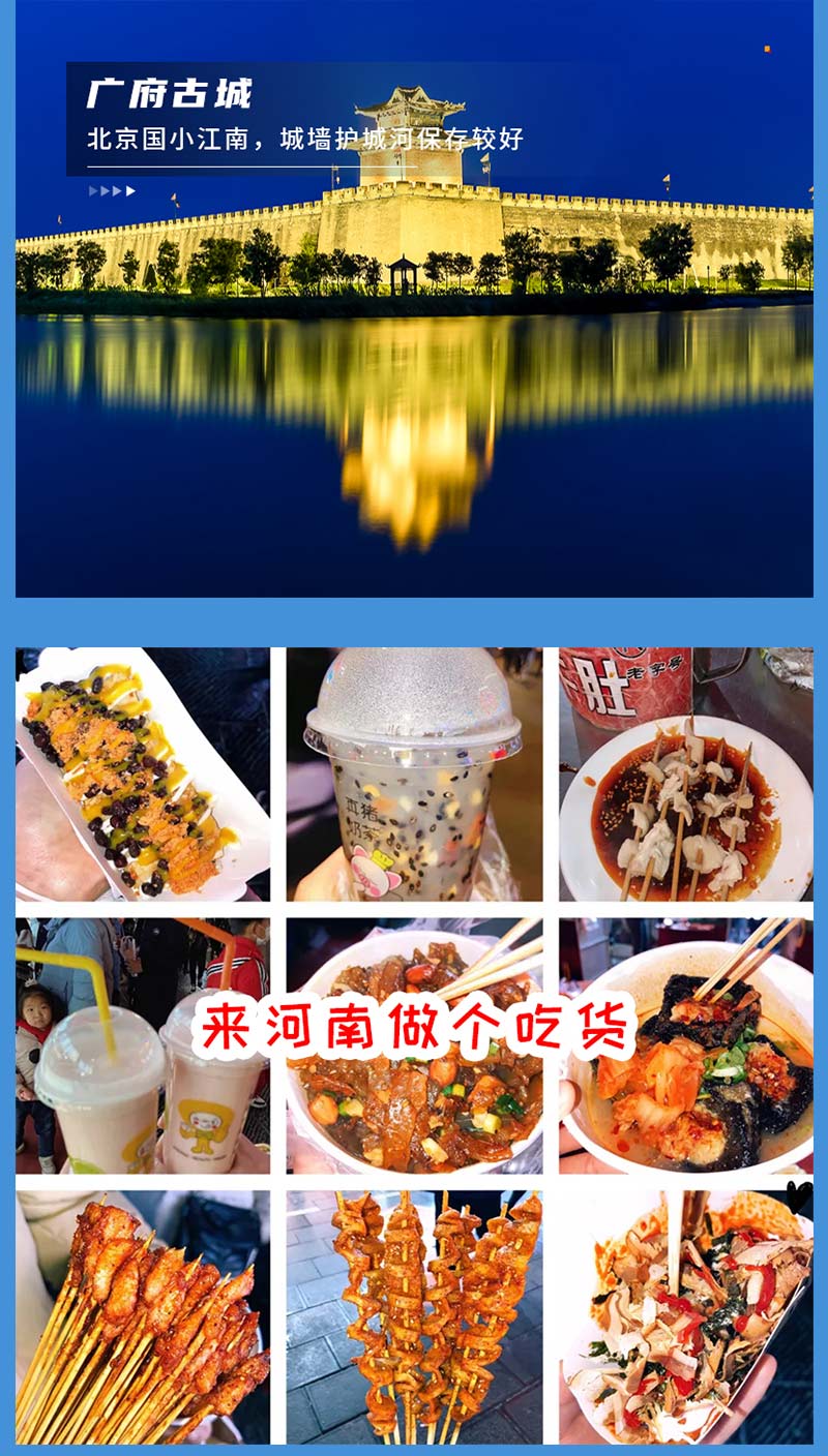 - 适时集合,我们前往安排住宿。之后大家自行前往城南夜市/邯郸道游览欣赏醉美夜景,寻觅美食。