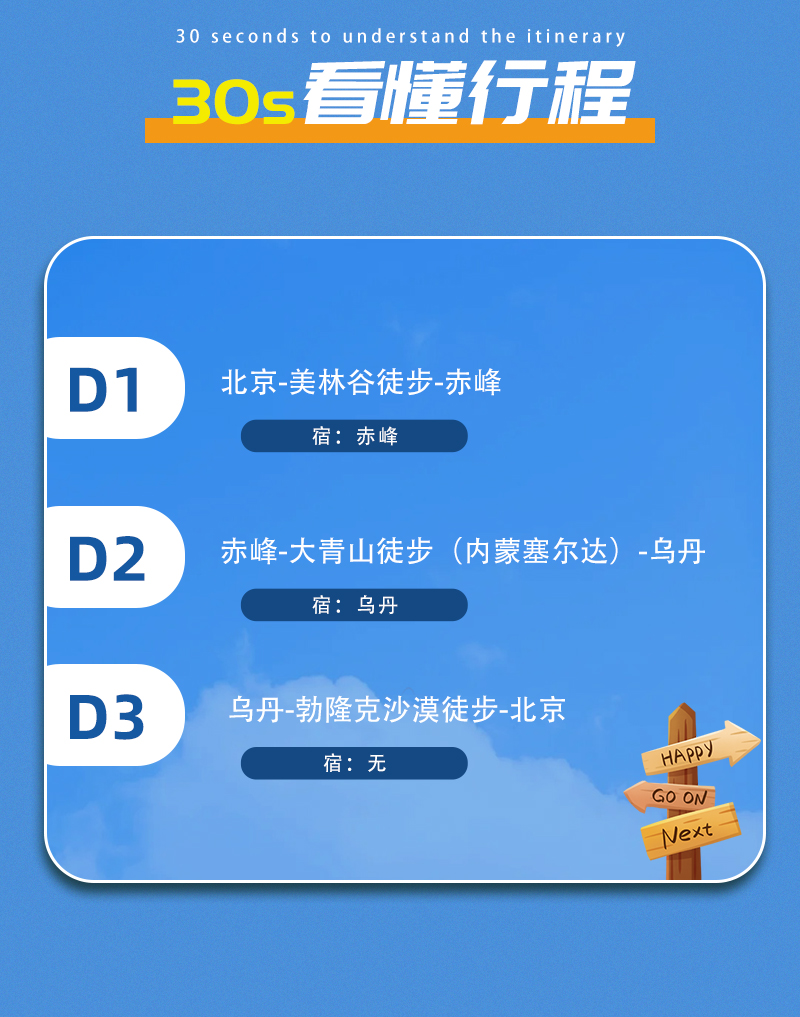 - 上午适时集合返京,约晚上抵达北京,结束三天徒步之旅!