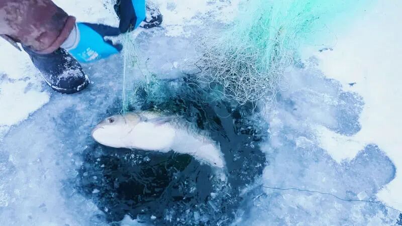 冬捕时一般会选择6寸以上稀疏网眼的渔网